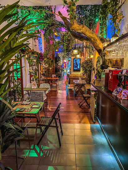 Tapas y platos principales de todo el mundo, además de cócteles, en un peculiar restaurante con plantas y un pintoresco patio.