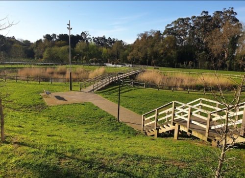 Es un paseo habilitado para el paseo al lado del río Breiro y llega hasta la playa de barraña, no pueden ir sueltos pero siempre hay perros con los que pueden interactuar.