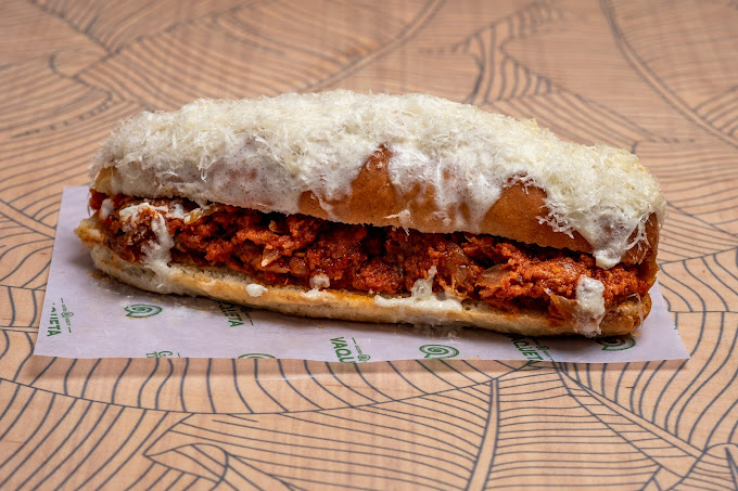 Cocina internacional en un restaurante moderno de estilo rústico, con sección de frutas y verduras.