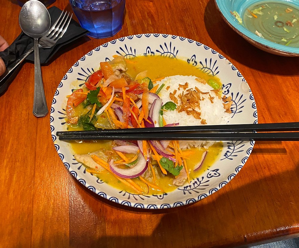 Sopa, rollitos de primavera y curri picante en un restaurante acogedor y animado de cocina vietnamita con un diseño chic y moderno.